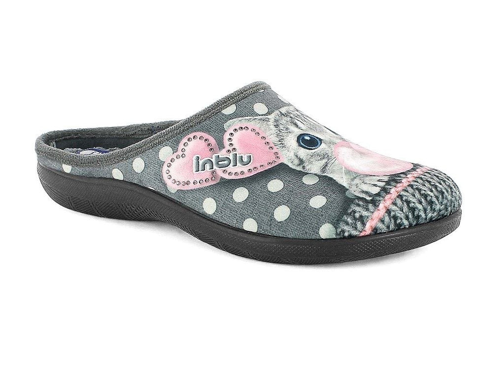 Pilkos spalvos, itin minkštos moteriškos įspiriamos šlepetės su žaismingu kačiuko paveikslėliu.