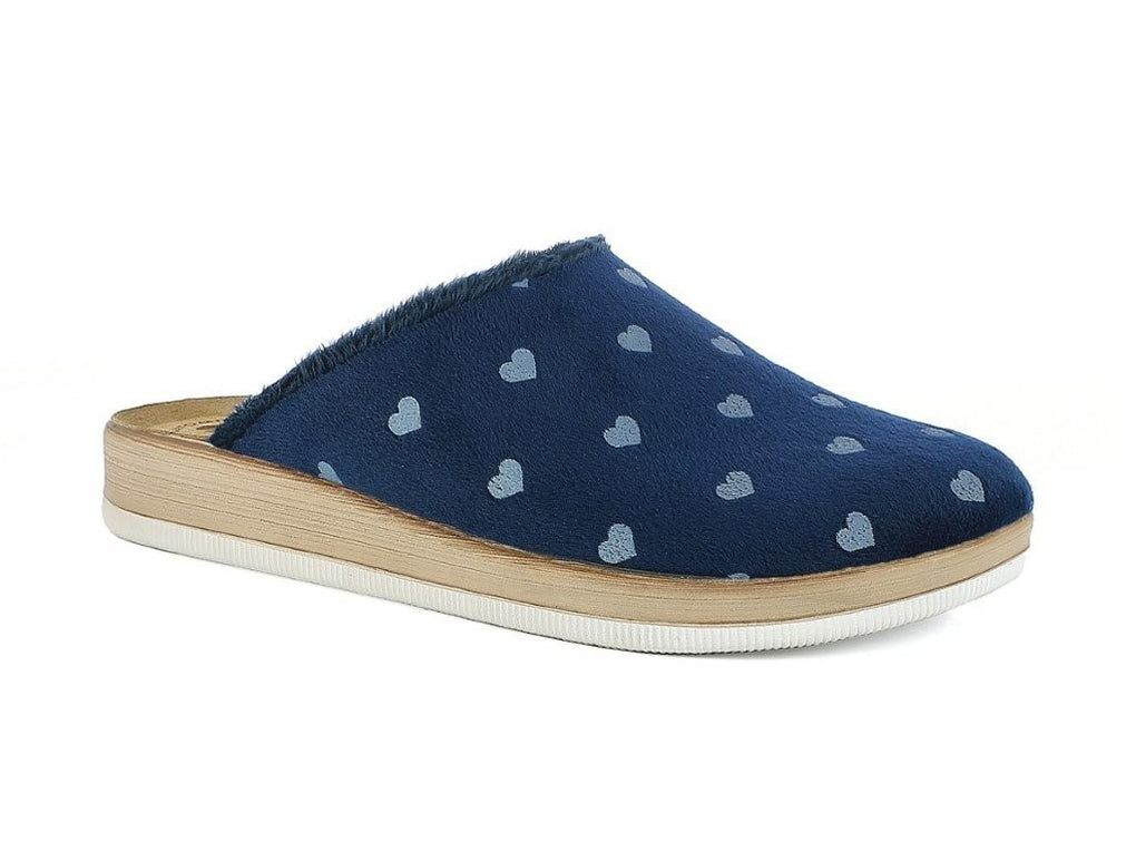 Mėlynos spalvos, žaismingos moteriškos šlepetės dekoruotos širdelėmis. Šių šlepečių vidpadis – paminkštintas, natūralios verstos odos, pagamintas pagal komfortą užtikrinančią Anatomico technologiją, tad jos patiks mėgstantiems itin patogią kambarinę avalynę.