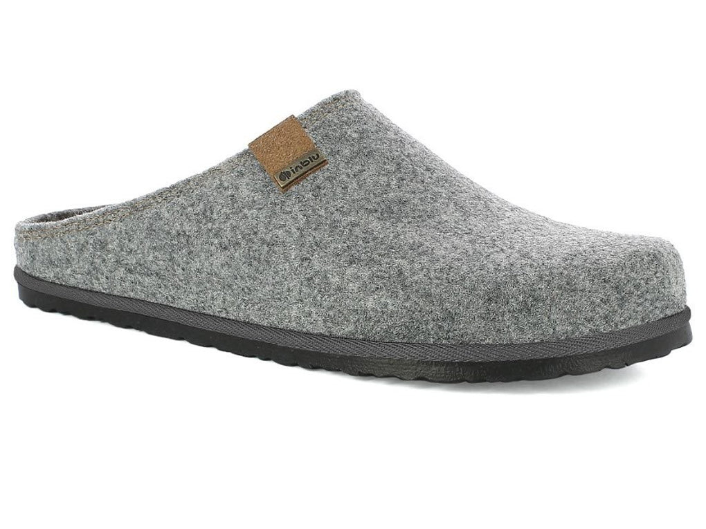 Šviesiai pilkos spalvos vyriškos kambarinės šlepetės pagamintos iš ECO Friendly veltinio. Šlepečių vidpadis - paminkštintas, iš natūralios verstos odos, tad šios šlepetės itin tinka ieškantiems patogiausios kokybiškos kambarinės avalynės.